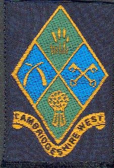 A lozenge party per saltire, or. 1 azure crossed huntsman's horns, or. 2 vert bulrushes or. 3 azure crossed keys of St Peter, or. 4 vert garb, or. Inscribed beneath on a scroll lettered CAMBRIDGESHIRE WEST