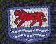 White an ox gules or, passing over a ford of water in base barry wavy os siz azure and white