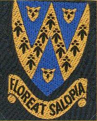 Or, seem of ermine tails azure, three piles of the second two issuant from the chief and one in base each charged with a leopards face or. Inscribed beneath with the county motto FLOREAT SALOPIA, azure, lettered or.