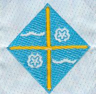 A lozenge azure quartered by a cross yellow throughout; 1 and 4 a bar wavy white, 2 and 3 the white rose of Yorkshire
