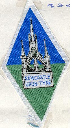 A lozenge per fes blue and green. The 15th century lantern tower of the Cathedral Church of St. Nicholas, Newcastle upon Tyne upon a bar couped blue lettered NEWCASTLE UPON TYNE argent