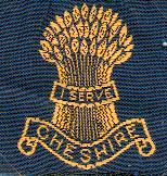 A garb bound with a motto band. I serve inscribed beneath CHESHIRE on a motto scroll CHESHIRE, all or.
