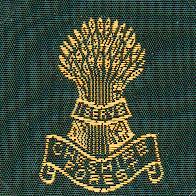 A garb bound with a motto band. I serve inscribed beneath CHESHIRE on a motto scroll CHESHIRE FOREST, all or.