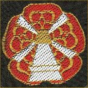 The red rose of Lancashire, the emblem of the Earls and Dukes of Lancashire. The rose first appeared as the Royal badge of Edward I who bore it or, while his brother Edmund Crouchback, by way of difference bore it gules and so passed it to his descendent, the House of Lancaster